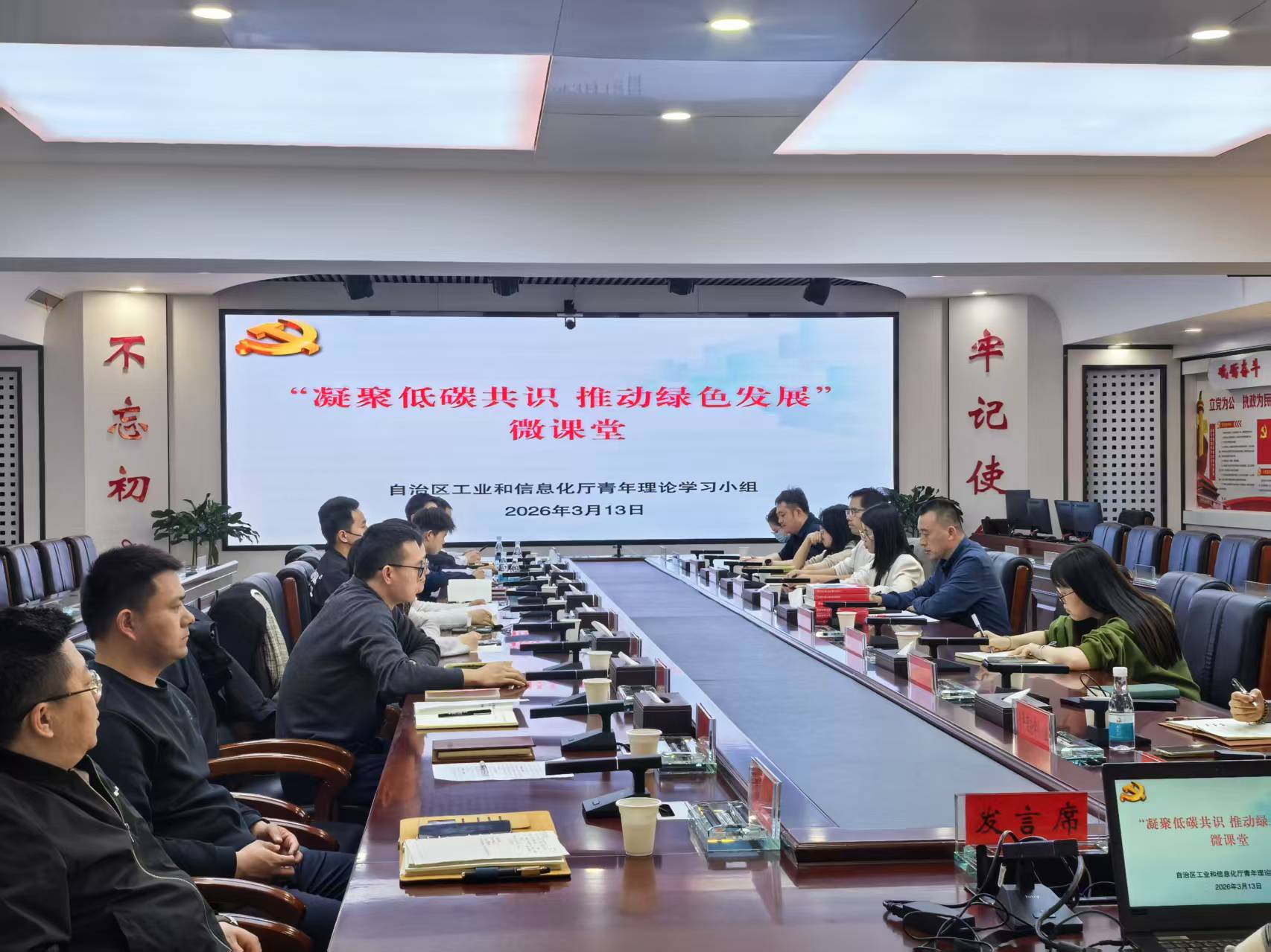 为深入学习贯彻习近平生态文明思想,持续强化青年干部理论武装,牢固树立绿色低碳发展理念,3月13日,自治区工业和信息化厅青年理论学习小组以“凝聚低碳共识 推动绿色发展”为主题,举办第三期“微课堂”活动。通过理论学习、视频教学、业务讲坛、交流研讨等,引导青年干部把绿色发展理念内化于心、外化于行,在推动全区工业高质量发展中展现青春担当。