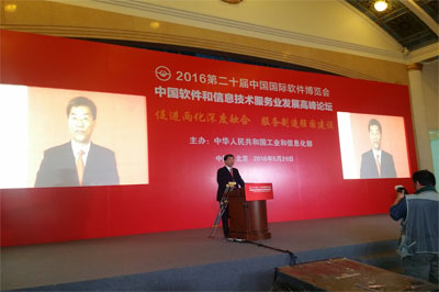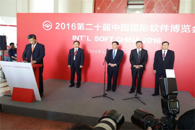 2016年5月26日,由工业和信息化部主办的第二十届中国国际软件博览会在北京展览馆开幕。工业和信息化部部长苗圩出席开幕式并致辞,工业和信息化部副部长怀进鹏主持开幕式。本届软博会以;促进‘两化’深度融合 服务制造强国建设;为主题,展示软件服务制造强国与网络强国取得的创新成果。