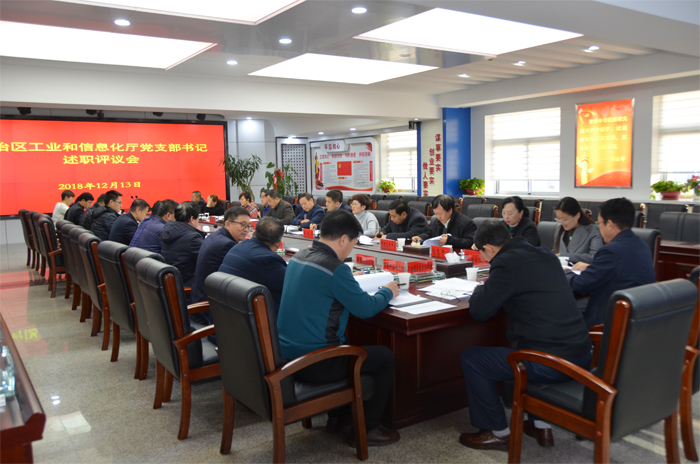 12月13日,根据区直机关工委《关于做好2018年度党组织书记述职评议考核工作的通知》要求,自治区工业和信息化厅组织召开了2018年度党支部书记述职评议考核大会。会议由厅党组书记、厅长、机关党委书记赵旭辉同志主持。厅机关党委委员、纪委委员,各党支部书记参加了述职评议大会。