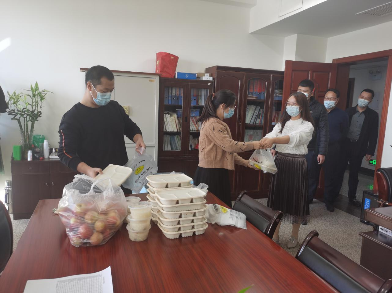 整合资源力量,实现后勤保障“一条龙”。办公室每日统计、代领、发放干部职工三餐,做好干部夜间住宿保障等事宜。联合机关党委完善厅机关志愿服务管理,为参加志愿服务人员购置配发N95口罩、护目镜等防护用品,加强志愿者岗前辅导、上岗提醒,确保志愿者自身安全。协调企业援助防疫口罩2000个、专用手套1000副、消毒液120瓶以及防护服、隔离服等,及时送到社区防疫一线。