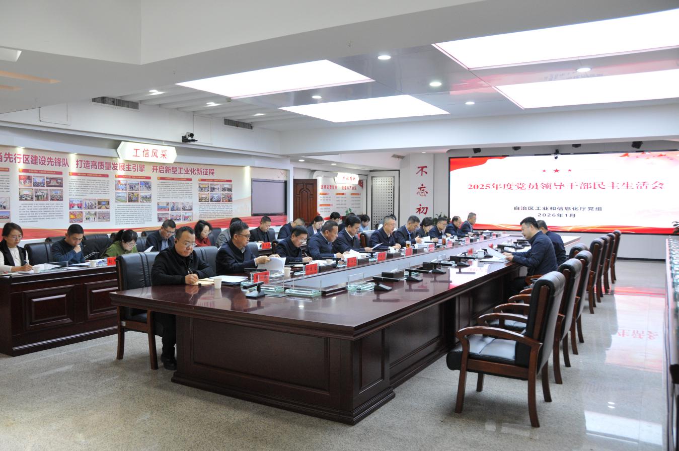 1月25日,自治区工业和信息化厅党组召开2025年度党员领导干部民主生活会,会议紧扣民主生活会主题,结合思想和工作实际,深入查摆检视问题,深刻剖析问题根源,严肃开展批评和自我批评,提出整改措施,明确努力方向。厅党组书记杨金海同志主持会议,自治区党员领导干部民主生活会第二督导组同志到会指导并进行了点评。