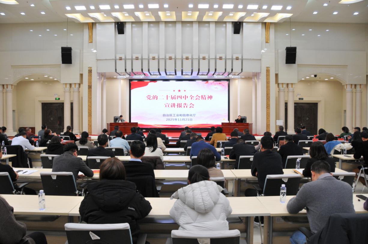 会议强调,学习宣传贯彻党的二十届四中全会精神是当前和今后一个时期的重大政治任务,要以此次宣讲为契机,引导广大党员干部把思想和行动统一到全会精神上来,把智慧和力量凝聚到落实全会确定的重点任务上来,进一步推动全会各项决策部署在工业和信息化领域实践中落地生根、见行见效。会议要求,要深学细悟领会,认真落实中央和自治区学习宣传贯彻全会精神的各项要求,坚持原原本本学、联系实际学、融会贯通学,把全会精神与深入学习贯彻习近平总书记历次来宁考察重要讲话重要指示贯通起来,与自治区党委十三届十一次全会精神结合起来,统筹抓好集中学与自主学、辅导学与研讨学、理论学与实践学,推动全会精神入脑入心、见行见效。要凝聚奋进共识,结合下基层调研、包抓工作、开展主题党日等活动,深入园区、企业广泛宣传全会精神,围绕全会确定的建设现代化产业体系、推动科技创新和产业创新深度融合等重大战略部署,加强政策宣传与深度解读,引导企业坚定信心、抢抓机遇、优化路径,激发干事创业、创新创造活力。要精准贯彻落实,结合自治区党委十三届十一次全会部署,聚焦主责主业,全面对标对表、积极向上对接,找准牵一发而动全身的关键要害,进一步谋准谋实重大战略任务、重大政策举措、重大产业项目,统筹抓好“十五五”规划编制、稳增长促发展攻坚行动、明年工作谋划和效能目标考评,全力以赴实现全年预期目标,确保“十四五”圆满收官,为“十五五”开局起步打牢坚实基础。