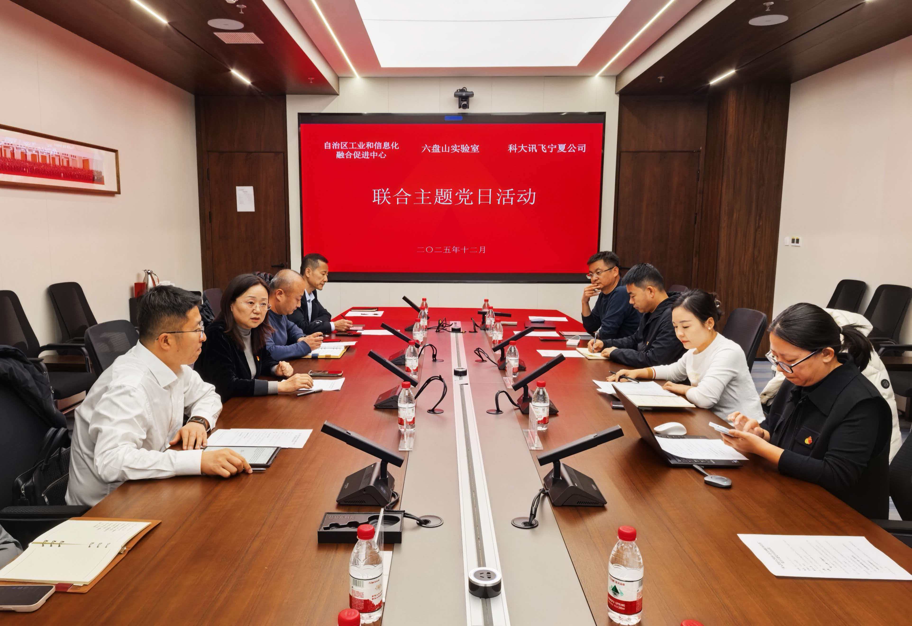 为深入贯彻党的二十届四中全会精神及自治区党委十三届十一次全会部署,推动党建与业务深度融合,12月18日,工业信息化融合促进中心党支部联合六盘山实验室党支部、科大讯飞宁夏公司党支部,在六盘山实验室共同开展“深入贯彻全会精神 奋力冲刺目标任务”联合主题党日活动。