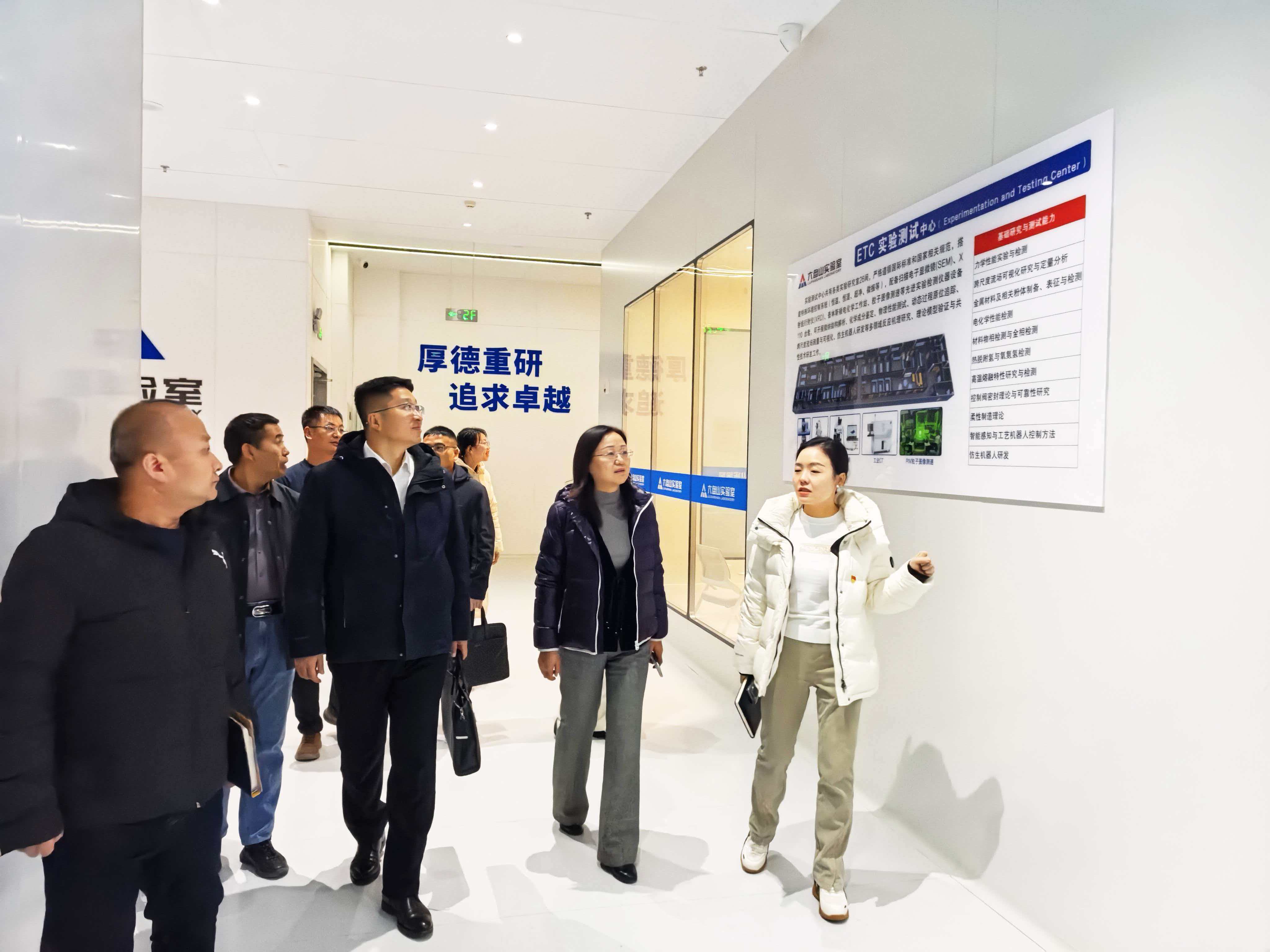 随后,集体参观了六盘山实验室成果展厅与科研平台,详细了解实验室在重点领域的技术突破与进展,并就“新能源材料适配”“智能制造技术落地”等实际问题与科研人员进行了现场交流。