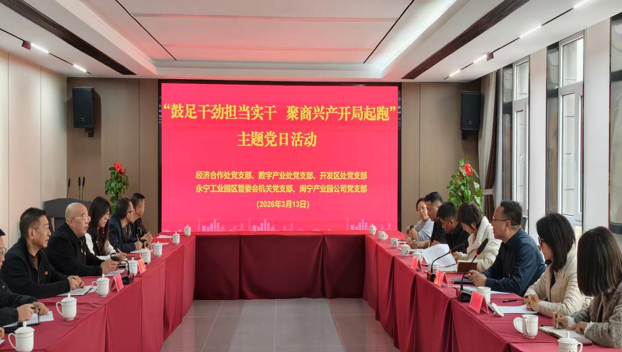 为深入学习贯彻习近平总书记关于树立和践行正确政绩观的重要论述。近日,自治区工业和信息化厅经济合作处党支部、数字产业处党支部和开发区处党支部与永宁工业园区机关党支部、闽宁产业园党支部联合开展“鼓足干劲担当实干 聚商兴产开局起跑”主题党日活动。