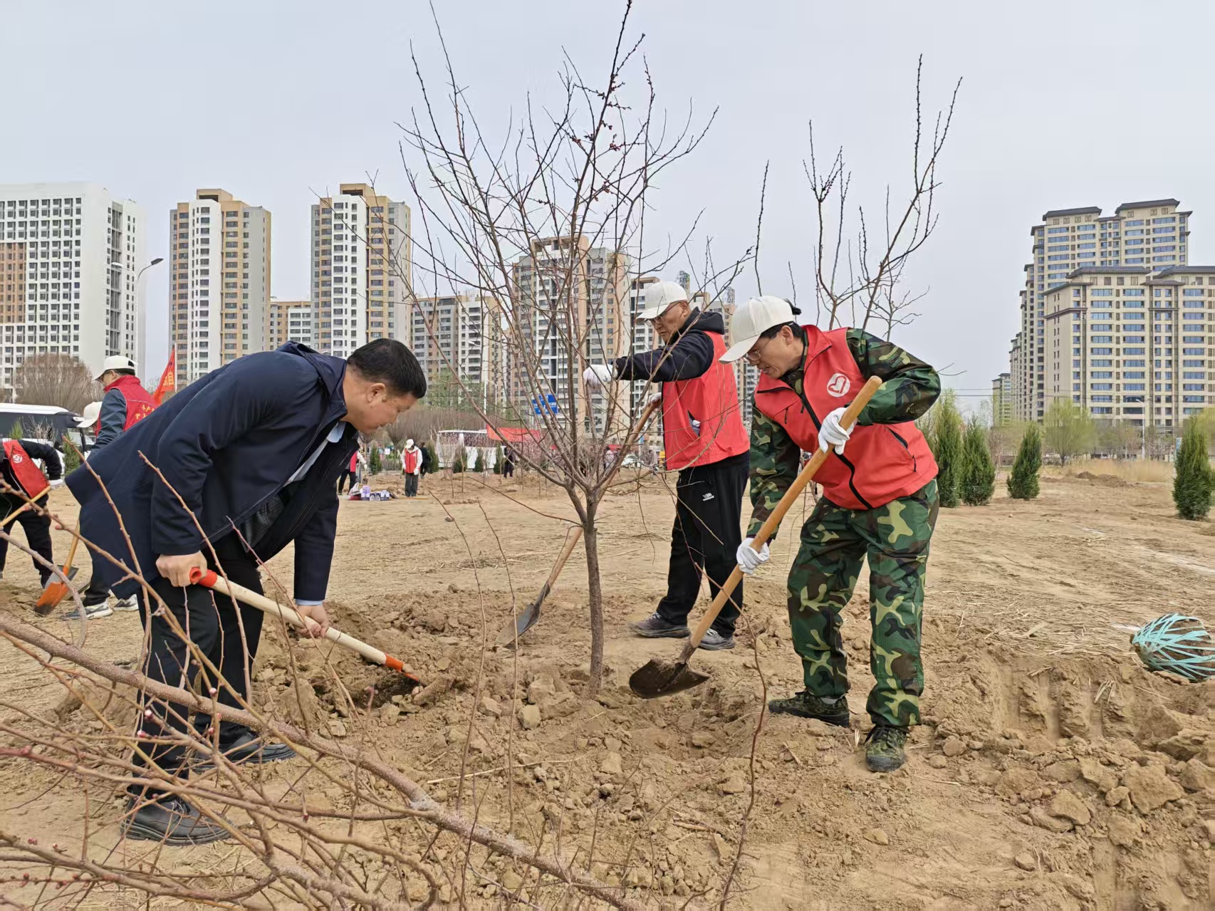 植树过程中,干部职工精神饱满、干劲十足,严格按照植树要求,分工协作、有序配合,挥锹铲土、扶苗填坑、踏实围堰、提水浇灌,每一道工序都认真细致、规范到位。经过共同努力,新栽植的苗木整齐排列、生机盎然,为区域生态环境增添了新绿。