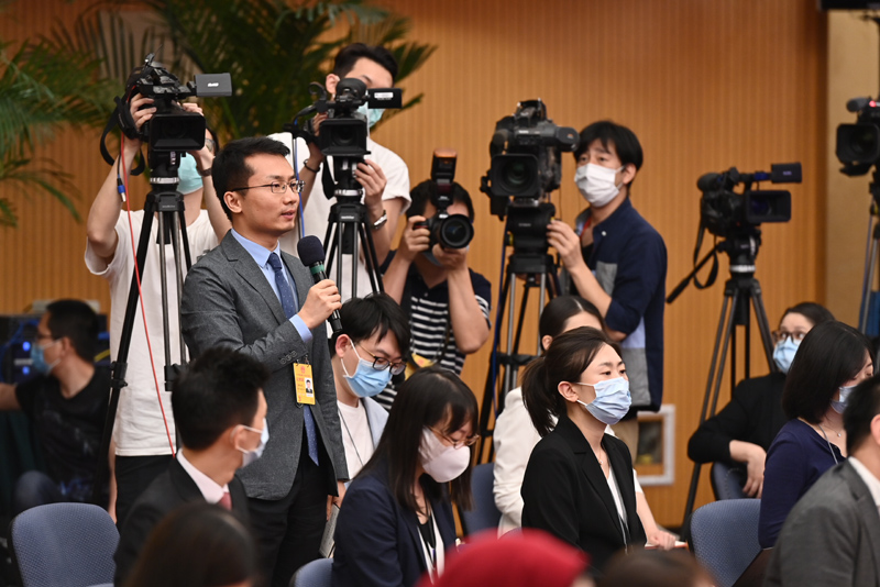 5月28日,国务院总理李克强在北京人民大会堂出席记者会并回答中外记者提问。这是记者在梅地亚中心多功能厅提问。
